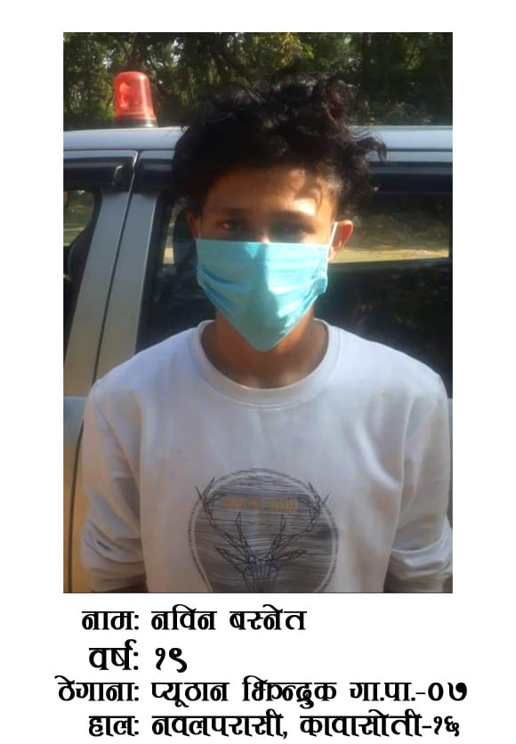 अर्यालका अनुसार १९ वर्षीय बस्नेतलाई प्रहरीले पक्राउ गरेर थप अनुसन्धानका लागि काठमाडौं ल्याउन लागेको छ । उनीविरुद्ध काठमाडौंमा प्रकाउ पूर्जी जारी भएको थियो । बस्नेतलाई पक्राउ गर्नका लागि नवलपरासी र बर्दघाट सुस्ता पूर्वका प्रहरीले सहयोग गरेका थिए ।