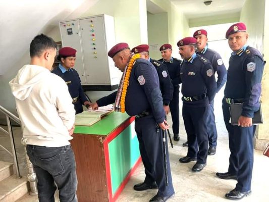 जिल्ला प्रहरी कार्यालय सुर्खेतको समग्र वस्तुस्थिति, कार्यालय भवन परिसर, स्रोत साधनहरूको व्यवस्थापन, शाखाहरुको अभिलेखिकरण, हिरासत कक्ष लगायत नवपर्वद्धनात्मक कार्यहरूको सम्बन्धमा अनुगमन तथा निरीक्षण गर्नु भएकाे हाे ।