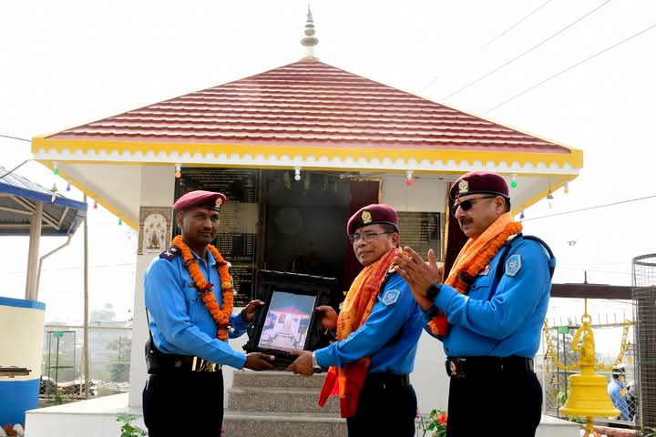 काठमाडौं उपत्यका प्रहरी कार्यालय रानीपोखरीका प्रमुख, प्रहरी अतिरिक्त महानिरीक्षक टेक बहादुर तामाङले प्रहरी वृत्त कीर्तिपुरमा नव:निर्मित नवदुर्गा भगवती मन्दिरको आज उद्घाटन गर्नु भएको हो। प्रहरी वृत्त कीर्तिपुरका प्रहरी र स्थानीय जनसमुदायको सहयोगमा सम्पूर्ण लागत ४ लाख ६१ हजार ७५६ रुपैयामा नव:निर्मित नवदुर्गा भगवती मन्दिरको निर्माण कार्य सम्पन्न भएको थियो ।