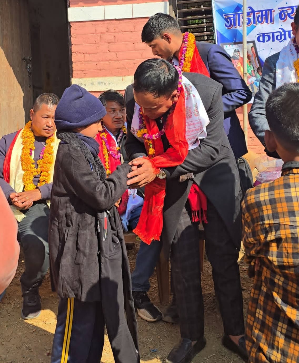 नेपाली कम्युनिष्ट पार्टीका युवा नेता दुधराज तामाङ र तिर्थ तामाङ लगायतको पहलमा काभ्रे जिल्ला तेमाल गाउँपालिका वडा नम्बर ८ मा रहेकाे श्री सेती देवी माध्यमिक विद्यालयका १२४ जना विद्यार्थीहरू तथा शिक्षक–शिक्षिकाहरूलाई ज्याकेट, स्वीटर, ट्राउजर लगायतका न्यानो कपडा वितरण गरिएको हो। साथै श्री शिवशक्ति प्राथमिक विद्यालय, तेमाल–भरज्याङ, आमा समूहलाई समेत न्यानो कपडा वितरण गरिएको थियो।