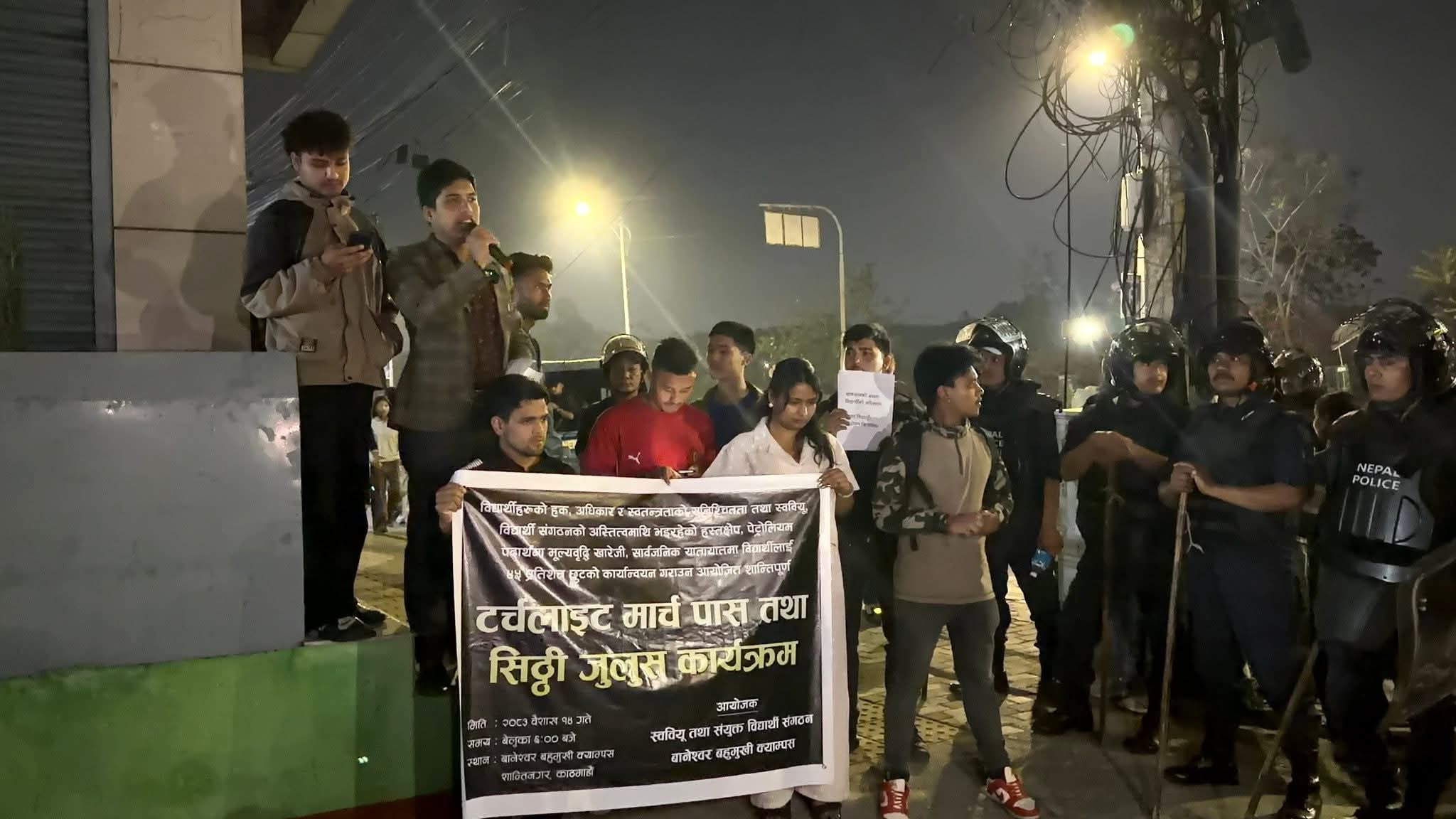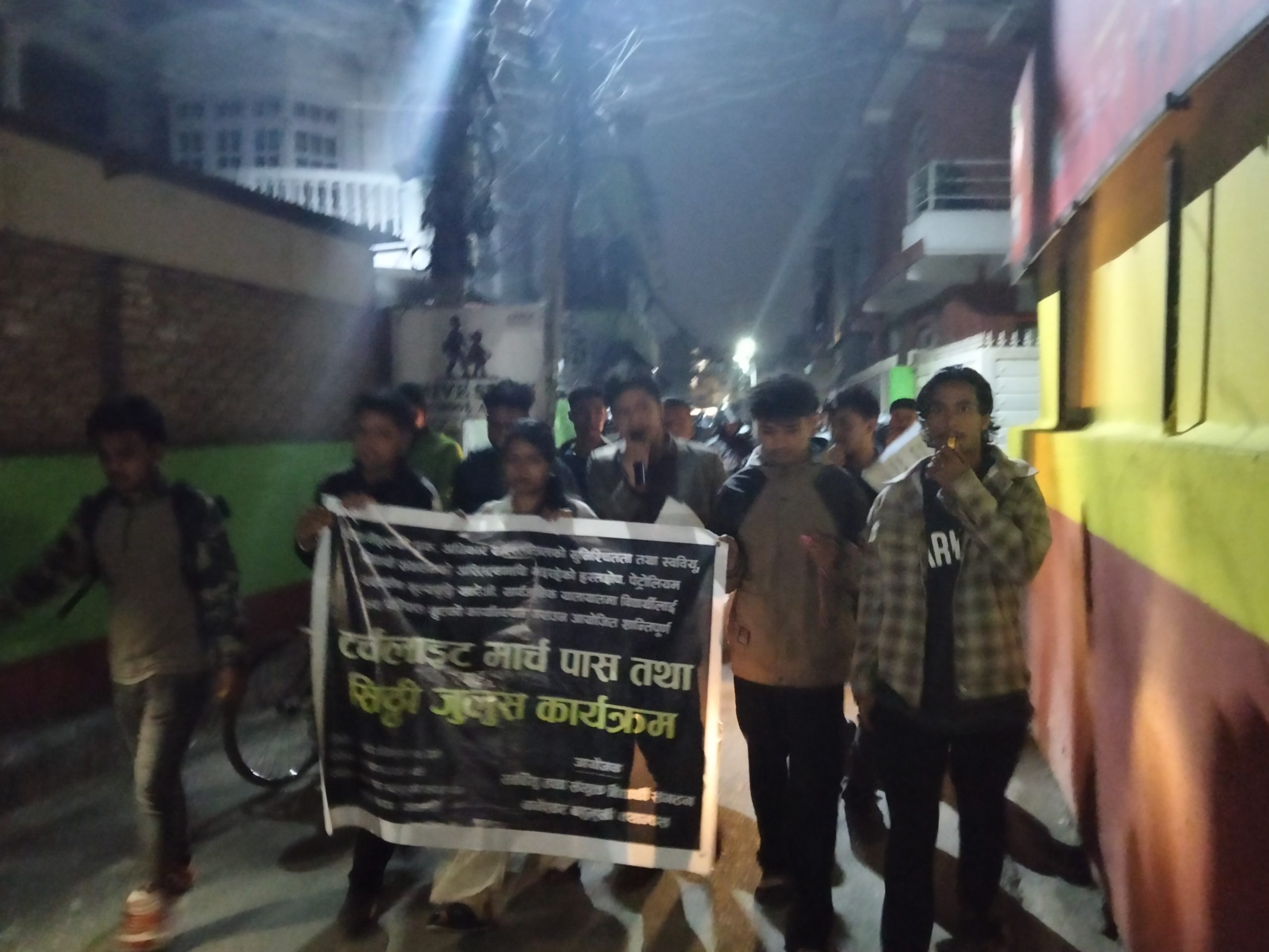 विद्यार्थीद्वारा बानेश्वर बहुमुखी क्याम्पसमा टर्चलाईट मार्चपास तथा सिठी जुलुस प्रर्दशन