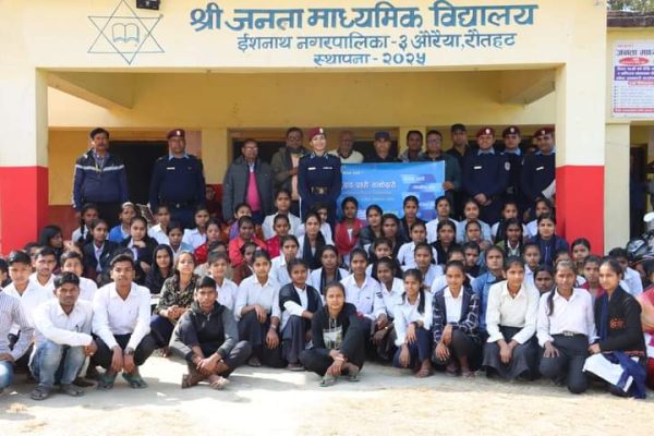 जिल्ला रौतहट ईशनाथ नगरपालिका वडा नं.३ स्थित रहेको श्री जनता मा.वि.औरैयाको प्राङगणमा UNICEF को सहयोगमा जिल्ला प्रहरी कार्यालय रौतहटको आयोजनामा आयोजित कार्यक्रम आज सम्पन्न भएकाे हाे ।